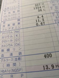 ヘモグロビンA1cが13.9(健常者は6.0くらい)